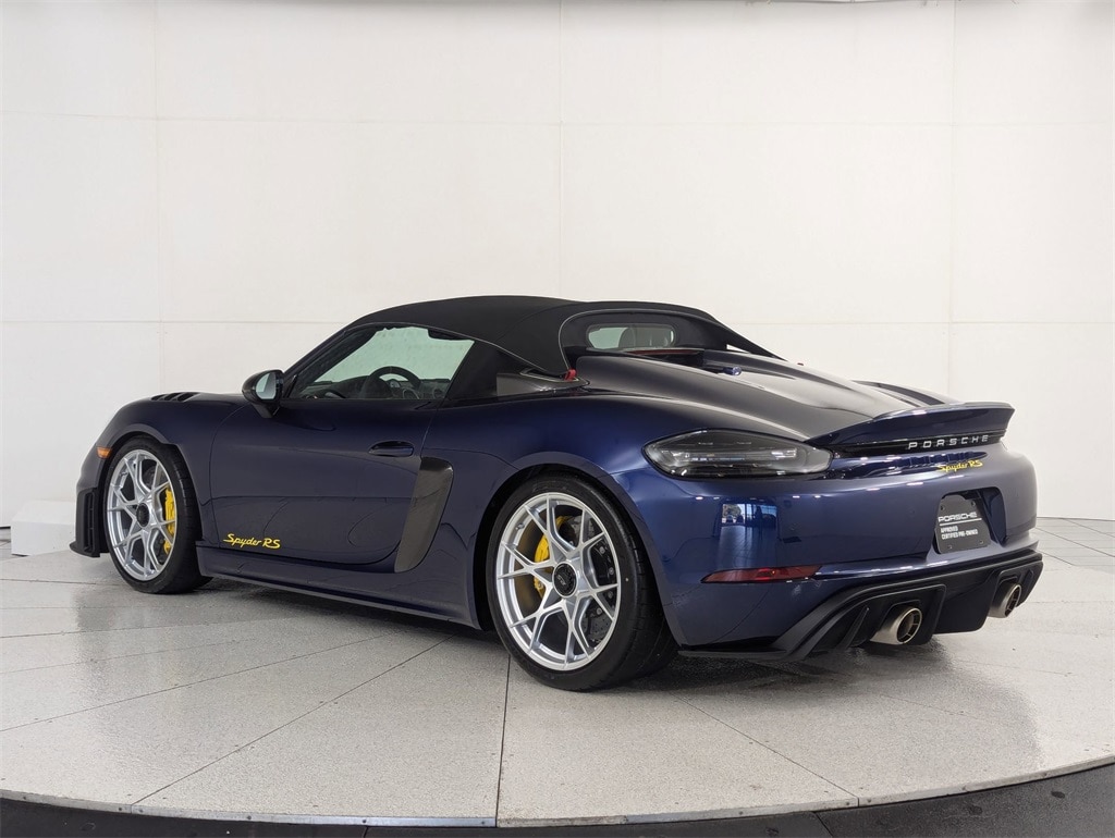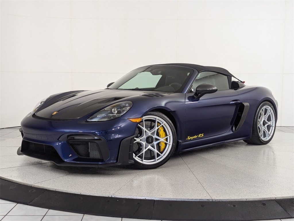 2025 Spyder RS finished in Gentian Blue w/ Black 18-Way Adaptive Sport Seats w/ Racing Yellow Stitching! Full body XPEL PPF already installed! Lightly driven and a very clean car! Equipped with Weissach Package, Front Axle Lift, PCCB Carbon brakes, Heated Seats, Chrono Package, Bose, LED PDLS Plus Lights, Auto Dimming Mirror w/ Rain Sensor, Lots of Stitching!